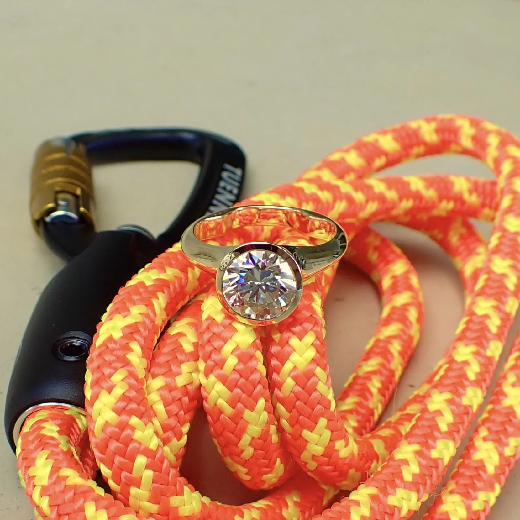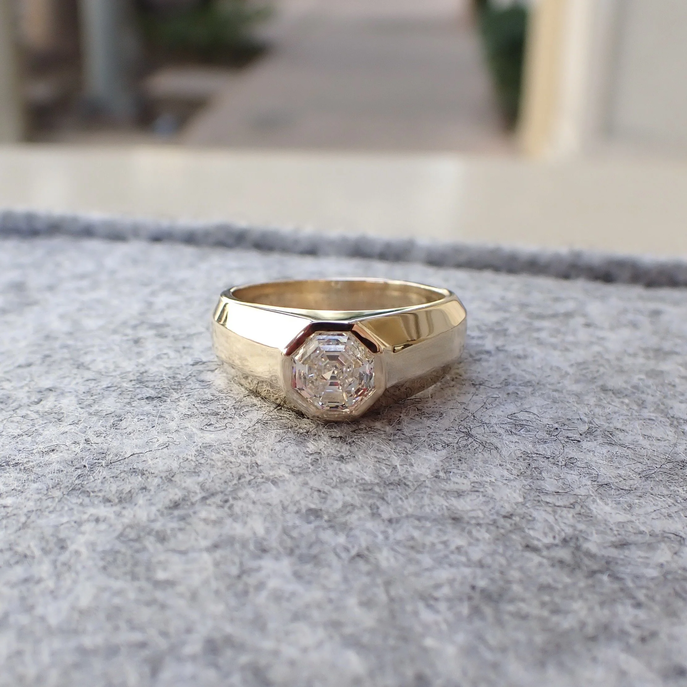 14k Yellow Gold Barrel Ring with a 1.22 carat Bezel Set Portuguese Cut Diamond - $4515