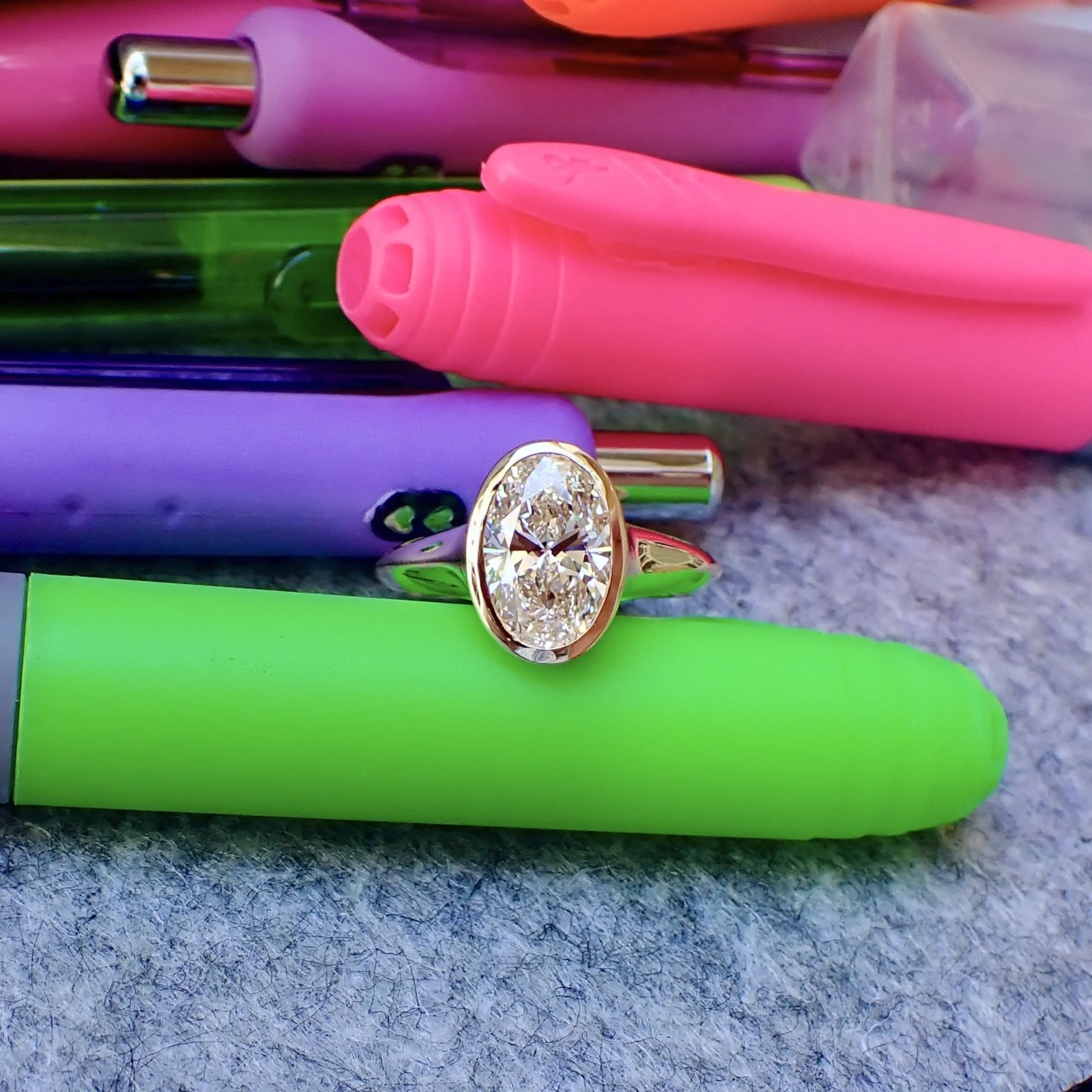 14k Yellow Gold Contemporary Bezel Set Ring with a 2.04 carat Oval Brilliant Cut Lab Grown Diamond - $3570
