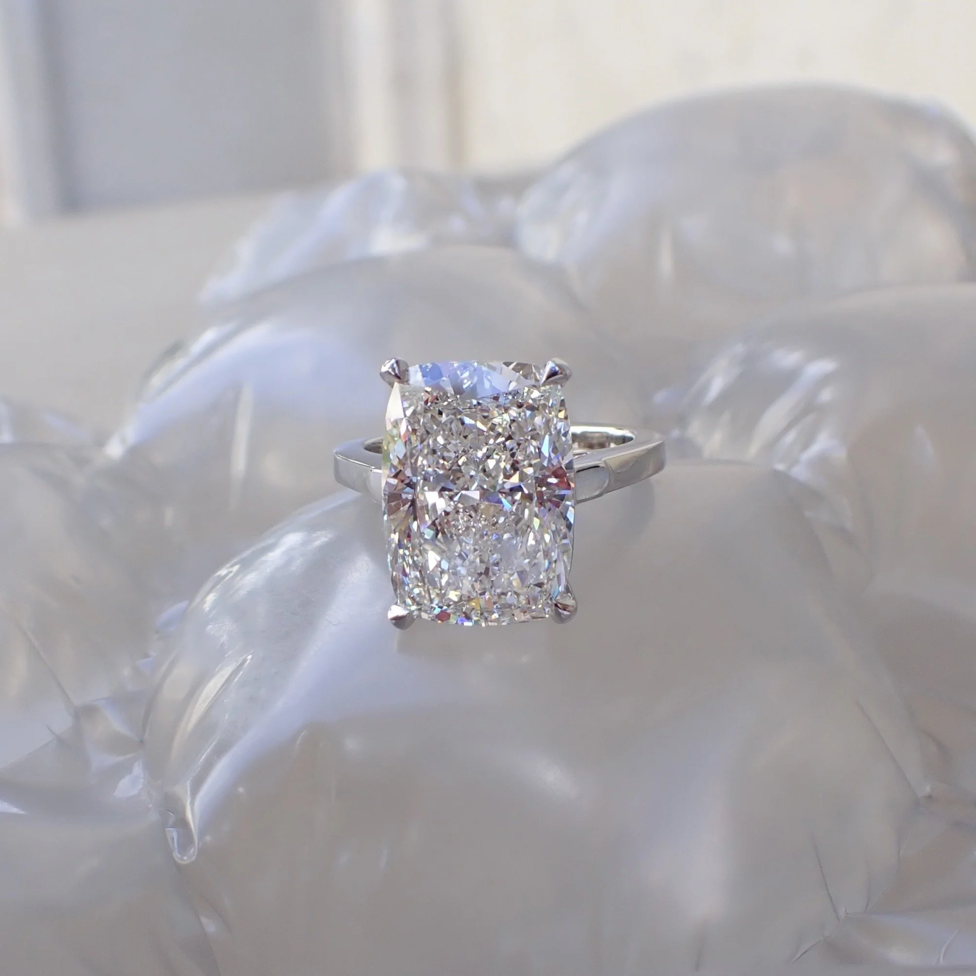 Platinum Engagement Ring with an 8.15 carat Cushion Cut Lab Grown Diamond - $7875