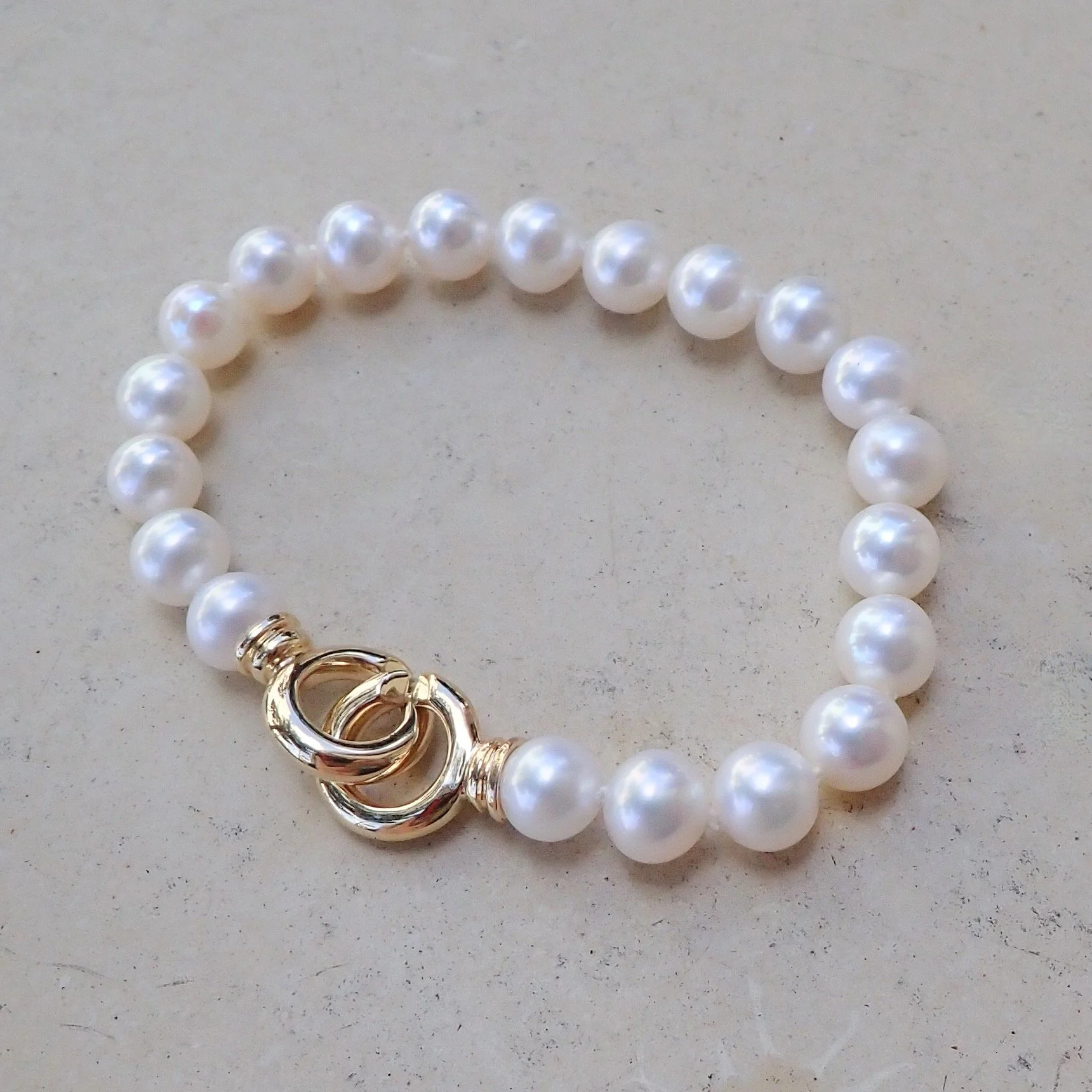 7.5-8mm Fresh Water Pearl Bracelet with 14k Yellow Gold C-Hook Clasp - $2740